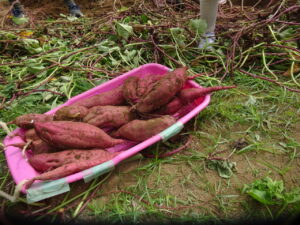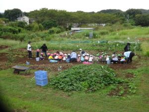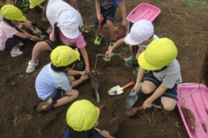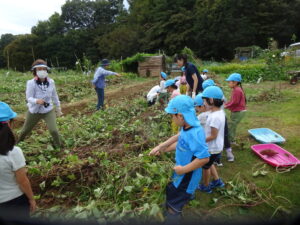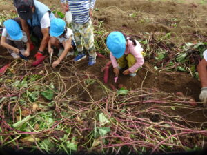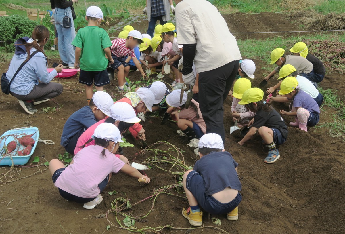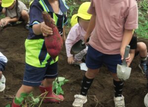 こどもたちがイモ掘りをしました(9月30日) ギャラリー・報告 2025.10.02幼稚園児が委託栽培のサツマイモ堀に来ました。 年長さんはサツマイモのつるを引っ張ってから芋堀です。 小さなシャベル一生懸命掘ります。 大きなサツマイモが掘れました。